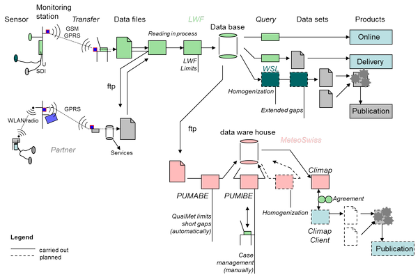 With 25 million data collected per year, the Long-term Forest Ecosystem Research programme LWF is dependent on an automatic data transfer from the field to a central databank. Data management includes securing raw data, quality control and online tools to monitor the sensors.